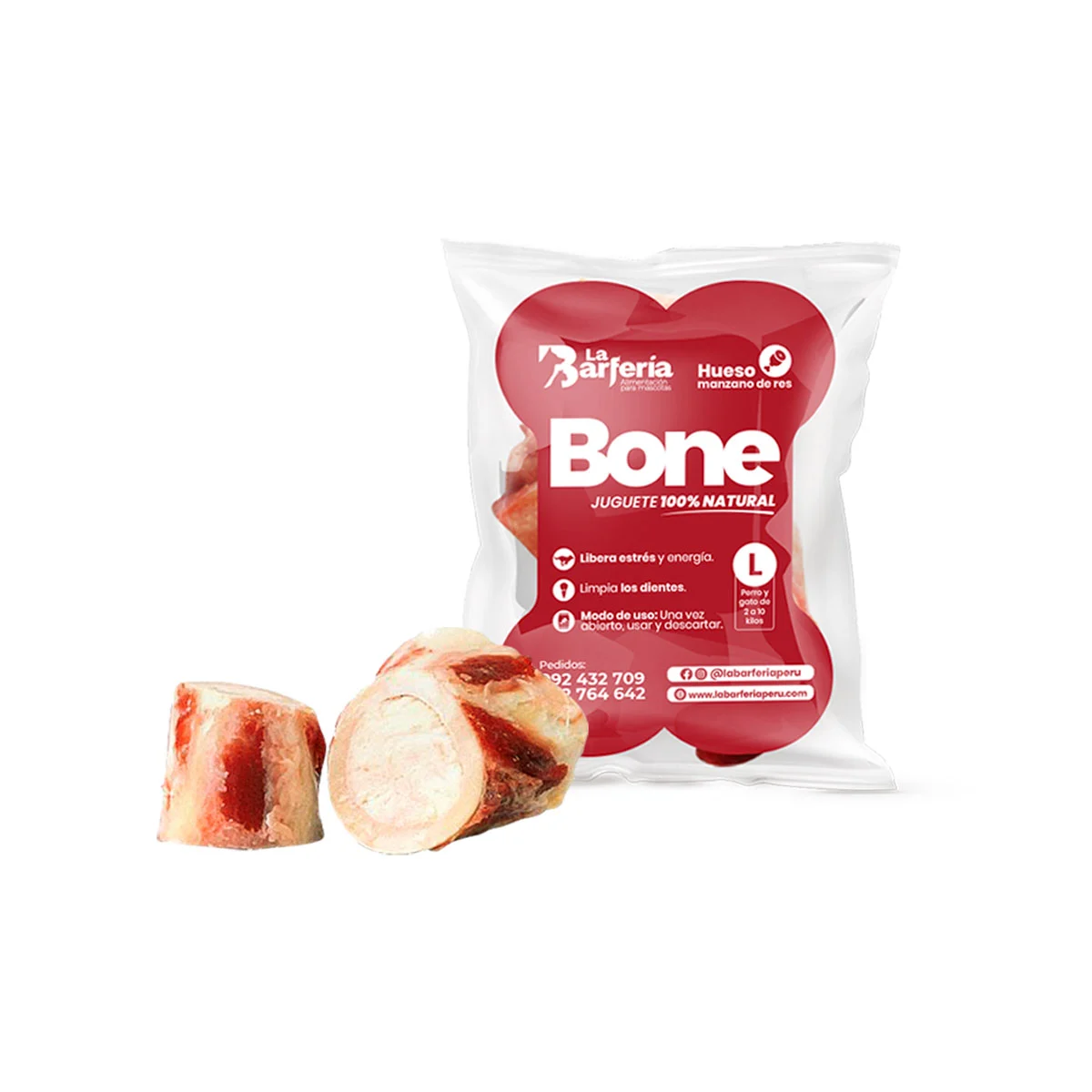 Hueso manzano de res. Apto para perros de 2 a 10 kg. Una vez abierto, usar y descartar.